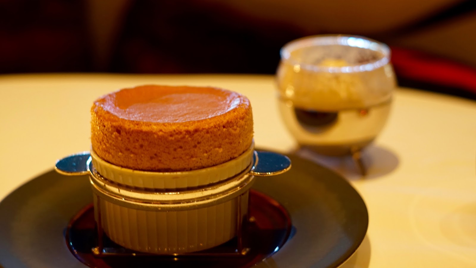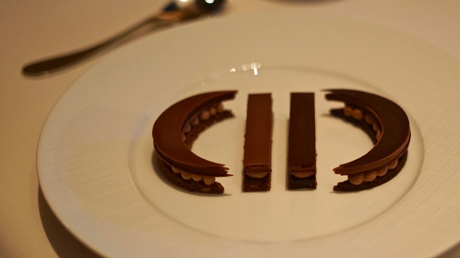 SC only had eyes on the signature dessert of chocolate from the Alain Ducasse factory in Paris, which was served as two crescents on the plate, one dark chocolate and one milk chocolate. They were almost little complicated millefeuille in the way the chocolate was layered, which included some crunchy praline. I wish I could tell you more about the dessert, but the promised taste from the girl never came! Yep, she devoured the lot before going ‘oh, I forgot to give you some, it was delicious!’