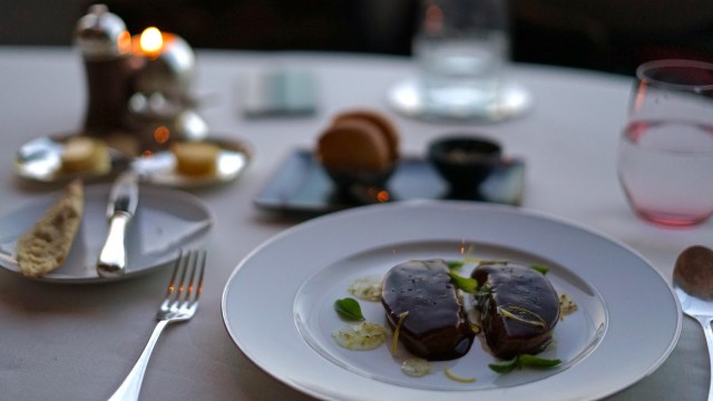 I’d chosen one of the restaurant’s signature dishes, the steamed duck foie gras with cedar lemon, which didn’t look as wonderful as the langoustines. What it lacked in refined presentation, it made up for with the seriously generous pile of expertly cooked foie gras and the mind blowingly good taste. I mean, wow, the creamy and earthy foie gras worked incredibly well with the lemon based sauce that sat atop the controversial ingredient. There was a side of lemon puree and some lightly toasted brioche that was supposed to be consumed with the foie gras, but I found them both distracting from the dish and largely left them alone.