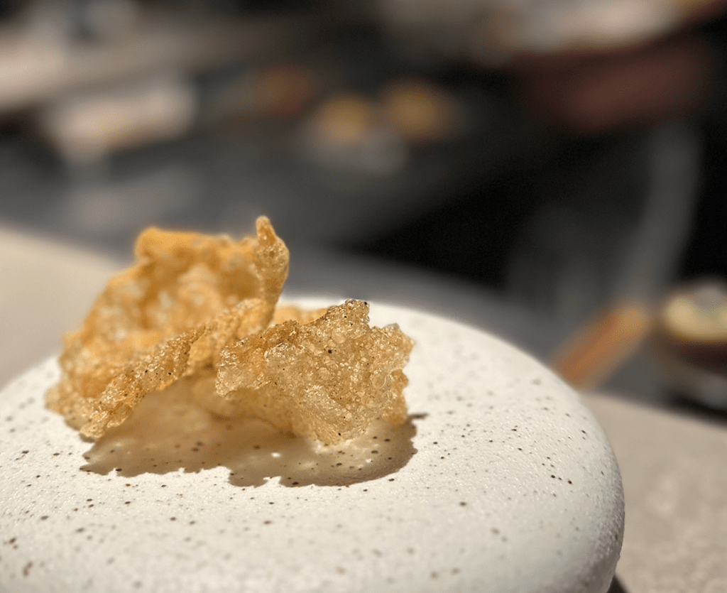 We devoured the wagyu tendon wafer with fermented beef salt next – this is like the most luxurious version of a prawn cracker you’ll ever eat. Rich in flavour but so light that it dissolves as soon as it enters your mouth. A bag of these while watching a movie would be pretty luxurious!